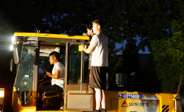 集團(tuán)十余名員工及多臺(tái)設(shè)備參與牧野湖、定國(guó)湖、新中大道與中原路交叉口等市內(nèi)重點(diǎn)“防御陣線”的建設(shè)。