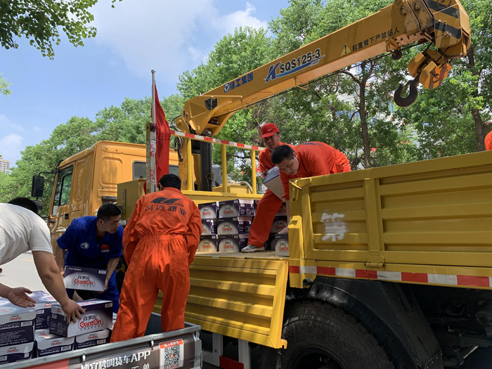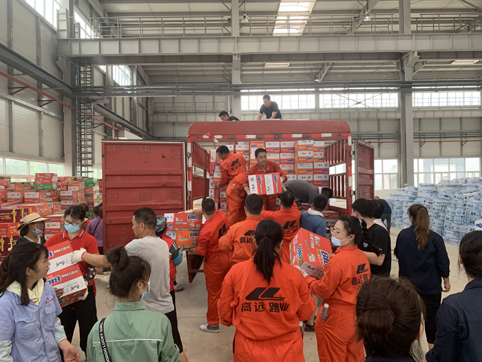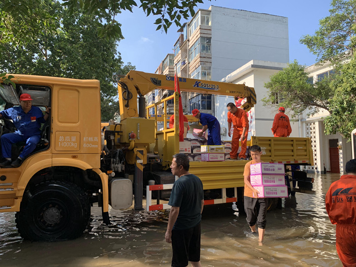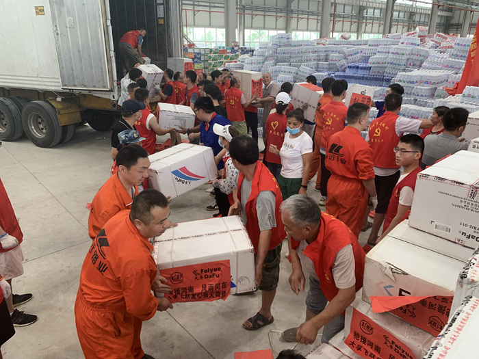 在暴雨過后,集團(tuán)員工自發(fā)組成志愿者團(tuán)隊(duì),連續(xù)多日參與新鄉(xiāng)市高新區(qū)對(duì)外接收救援物資的分派點(diǎn)進(jìn)行物資搬卸。
